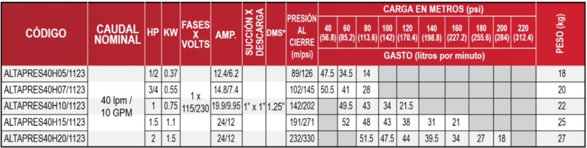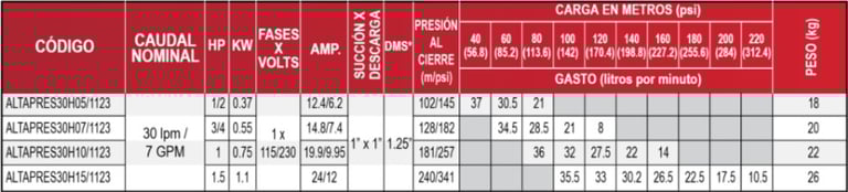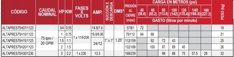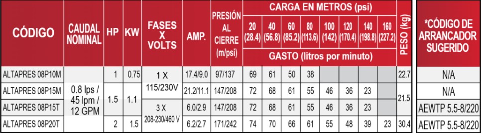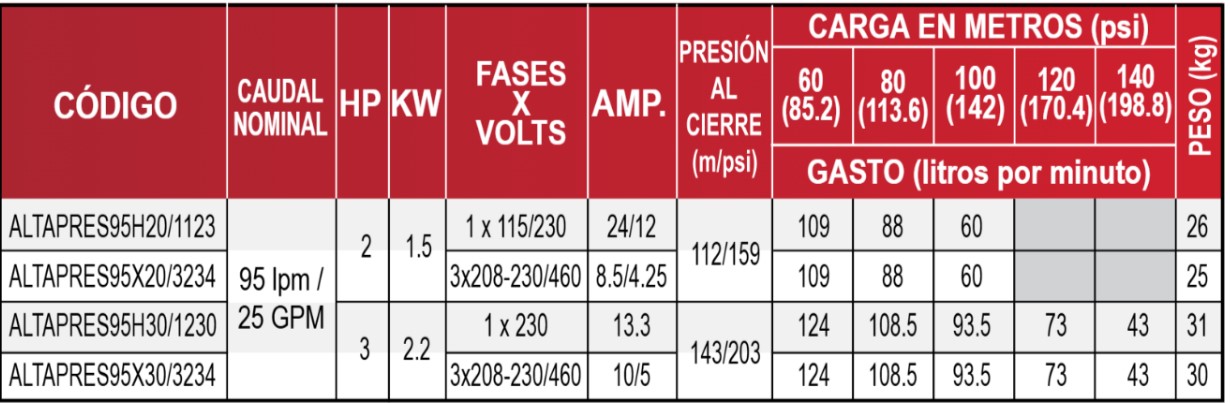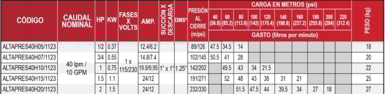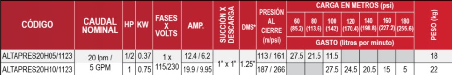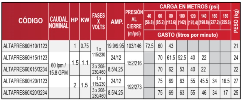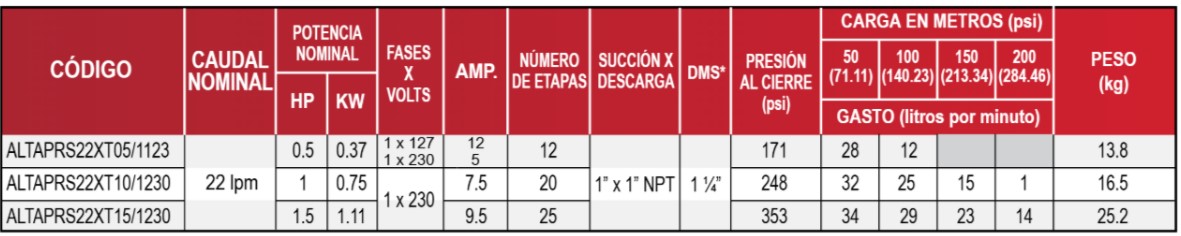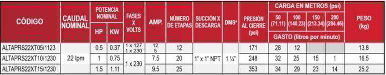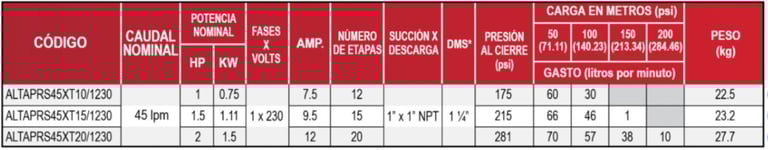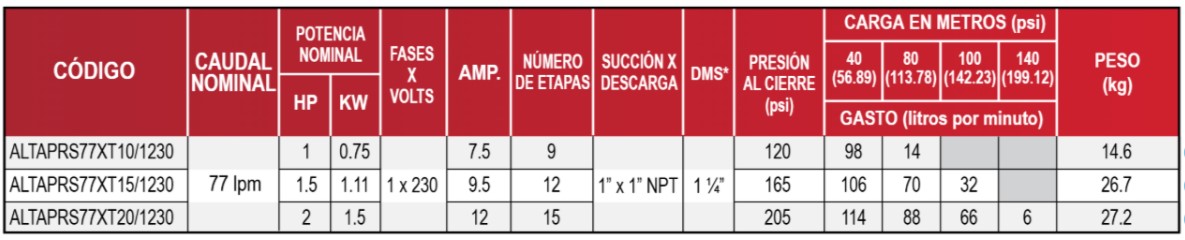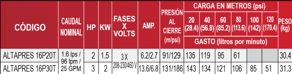 La serie ALTAPRES XT son motobombas multietapas horizontales usadas para aplicaciones de alta presión, gracias a su sistema de impulsor flotante se logran máximas eficiencias y un óptimo desempeño