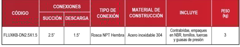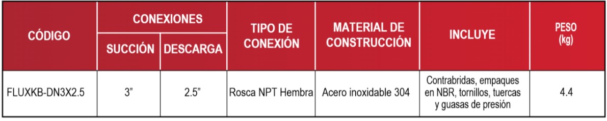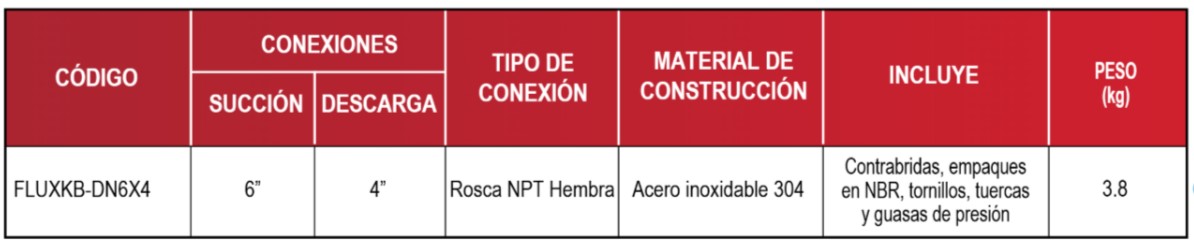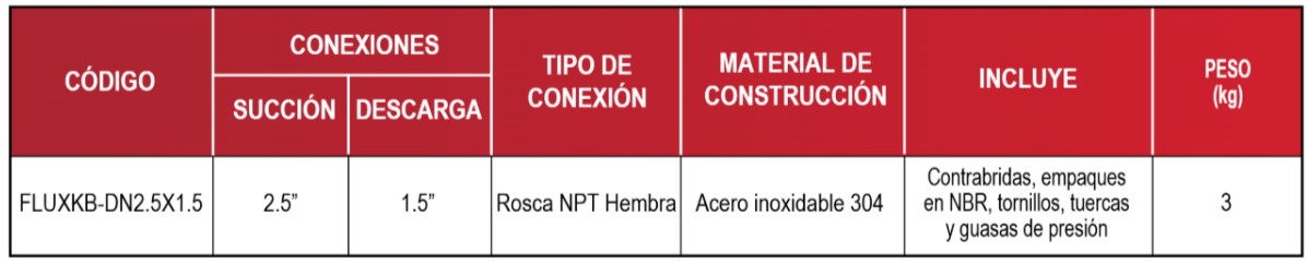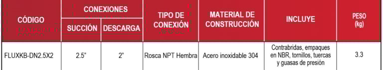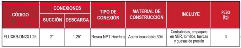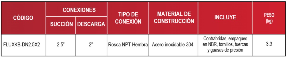 Diámetro mínimo sugerido para tubería de succión: 2.5”