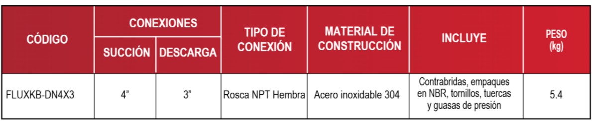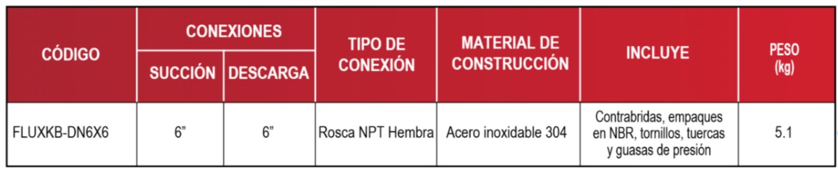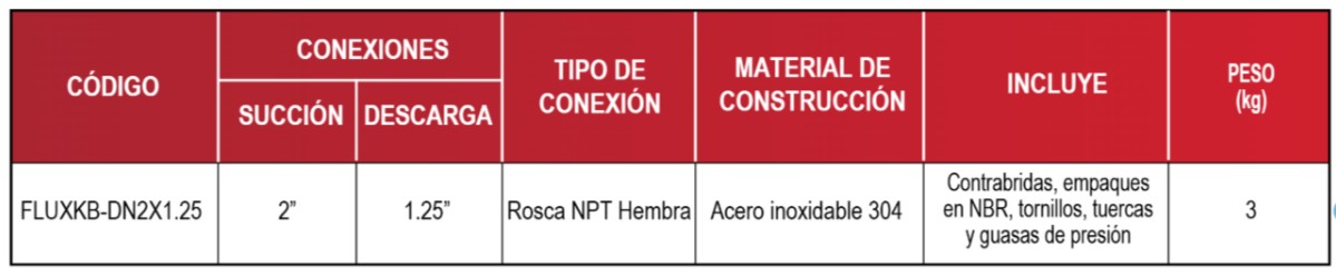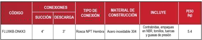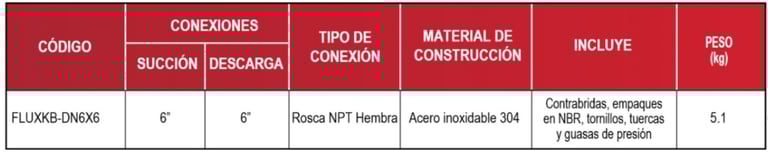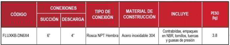 Impulsor, eje, cuerpo y tornillería en acero inoxidable 304