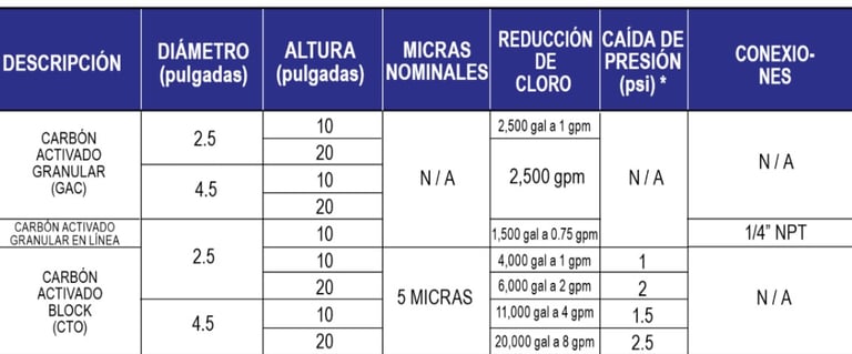 Coventina pone a su disposición una gama de filtros cartucho de carbón activado de cáscara de coco, para la reducción de cloro, sabores, olores y sedimentos presentes en el agua.